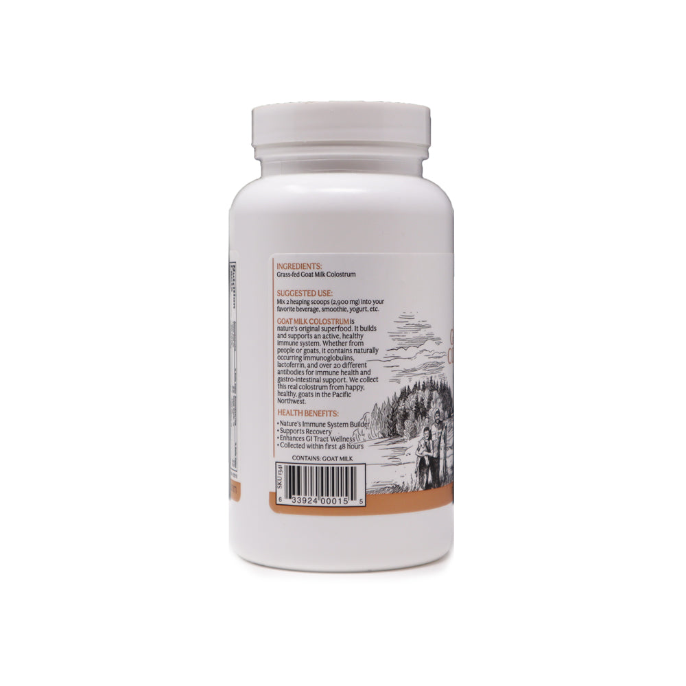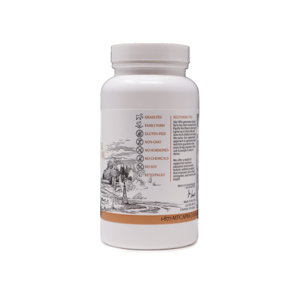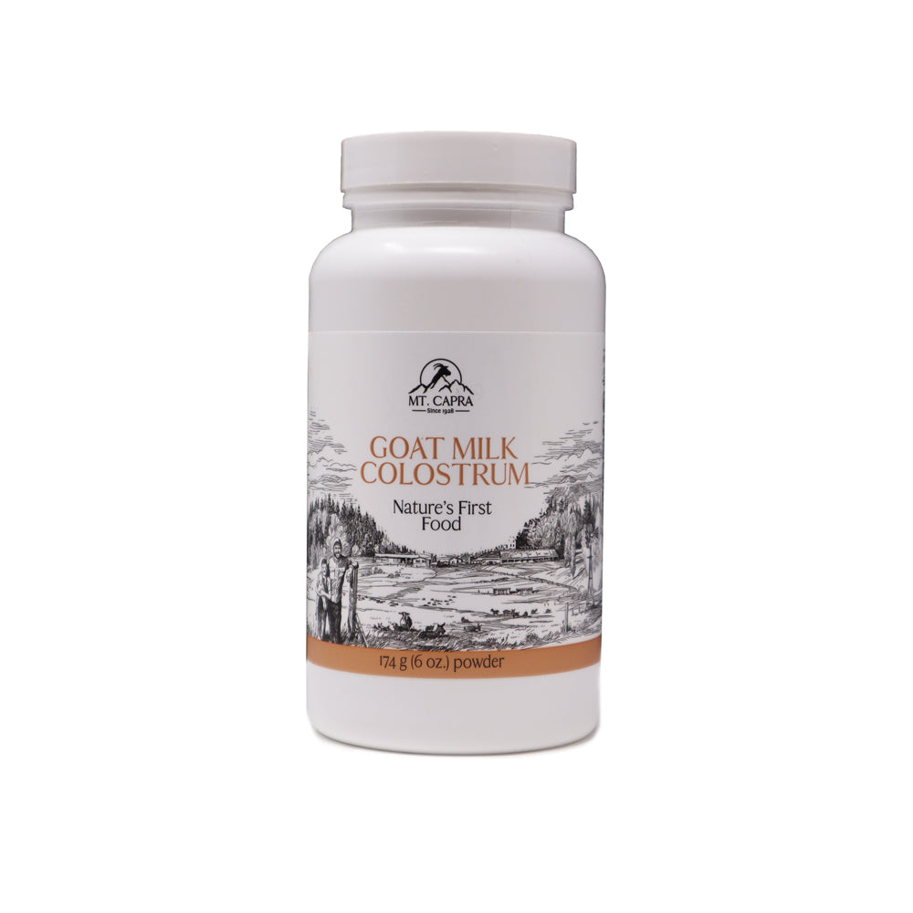 CapraColostrum™ es un superalimento excepcionalmente nutritivo, elaborado con calostro de cabras alimentadas con pasto y criado en la granja exclusiva de Mt. Capra en el estado de Washington. Este calostro se recolecta cuidadosamente en las primeras 48 horas después del parto, preservando sus nutrientes esenciales para el sistema inmunológico.
