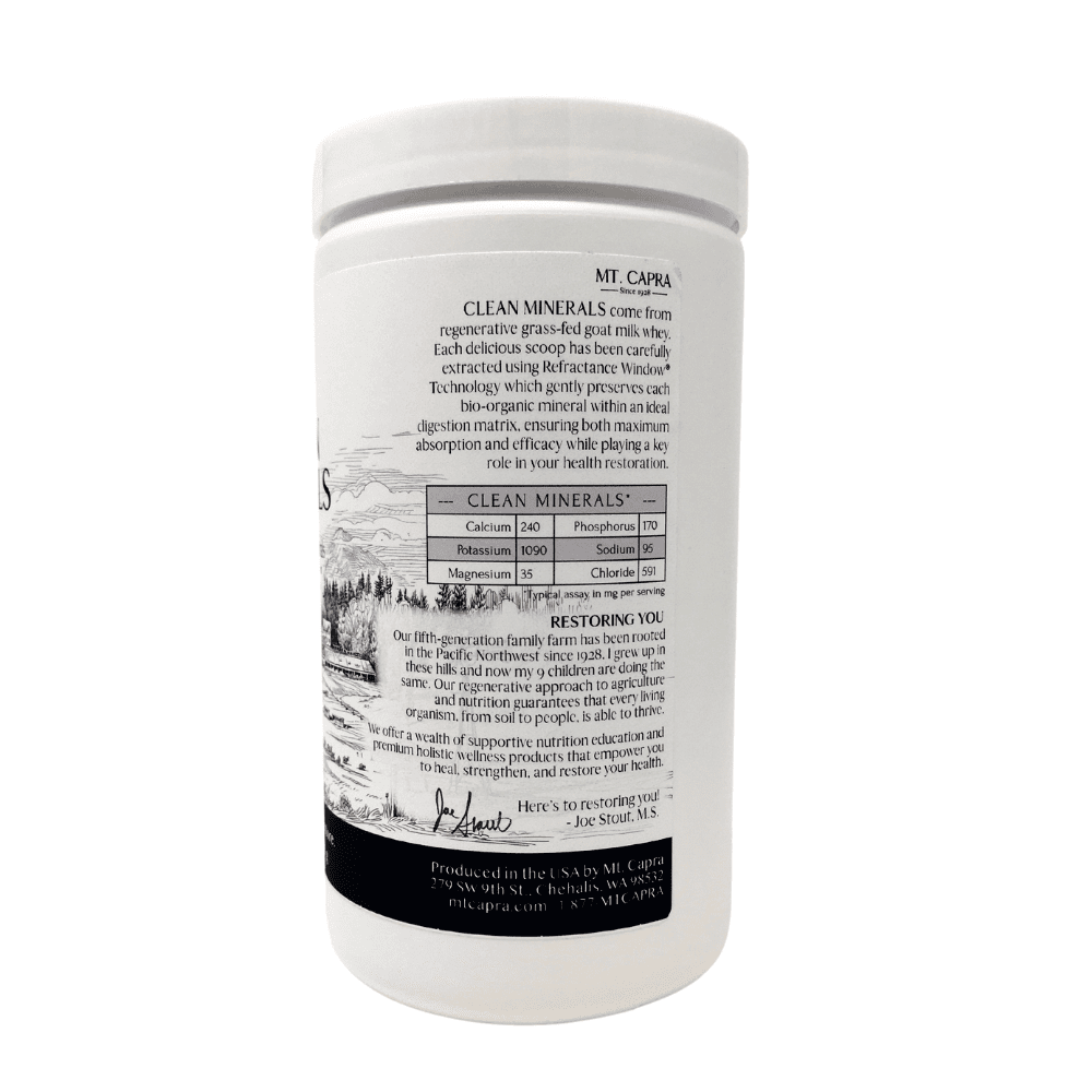 El nuevo Clean Minerals de Mt. Capra es un suplemento mineral revolucionario que deriva todos sus minerales de un alimento integral 100% natural. Múltiples macro minerales y minerales de trazas naturales que se extraen gentilmente de la leche de cabra capturando sus minerales, creando una mezcla rica en electrolitos e hidratante para satisfacer todas tus necesidades minerales.