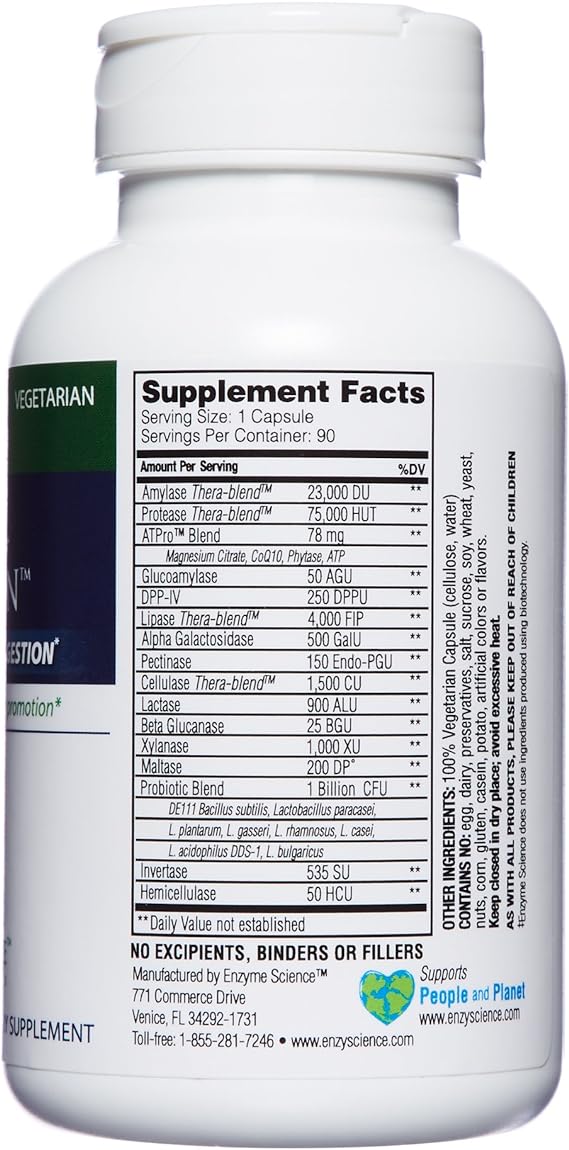 Enzyme Science formula cada producto centrado en enzimas con enzimas Thera-blend exclusivas. El proceso Thera-blend está científicamente diseñado para proporcionar soluciones óptimas para la salud y el bienestar digestivo. Estas enzimas únicas de proteasa, amilasa, celulasa y lipasa se componen de múltiples variantes que se combinan para funcionar sinérgicamente en todo el amplio rango de pH del cuerpo humano.