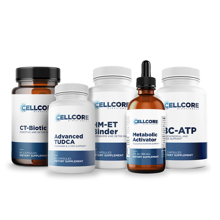 Sobre la base del progreso realizado en la Fase 4A, la Fase 4B continúa promoviendo la limpieza dentro y fuera del intestino. Consiste en TUDCA avanzado, BC-ATP, CT-Biotic, aglutinante HM-ET y activador metabólico. TUDCA avanzado se agrega nuevamente a esta fase para continuar promoviendo la función hepática saludable y el flujo de bilis, mientras que el activador metabólico respalda el equilibrio hormonal, la función tiroidea y la capacidad natural del cuerpo para desintoxicarse.* Los pacientes/clientes continuarán tomando BC-ATP, CT- Biotic y HM-ET Binder para promover procesos de desintoxicación en el intestino, las células y los tejidos, al tiempo que fomenta la reparación celular y la producción de energía.*
