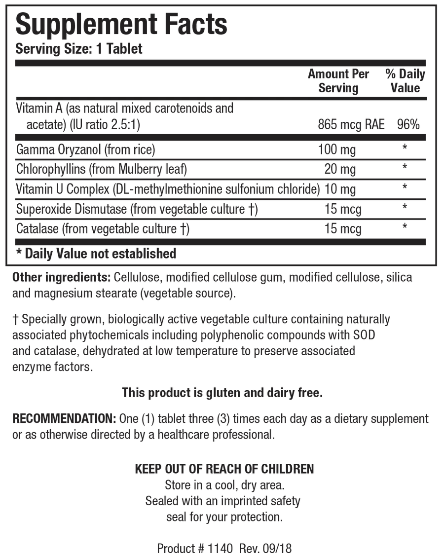 • Nutrientes esenciales: Enriquecido con vitamina A y clorofilinas para fortalecer la función gastrointestinal y promover el equilibrio digestivo.*