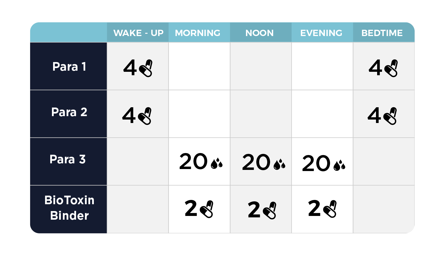 Antes de iniciar con el Para Kit, es imperativo asegurarse de que tus vías de drenaje se muevan bien. Esto significa de 1 a 3 deposiciones por día y la capacidad de sudar. Recomendamos agregar Bowel Mover o apoyo para el drenaje linfático como LymphActiv para aumentar el drenaje, especialmente si se es propenso al estreñimiento.